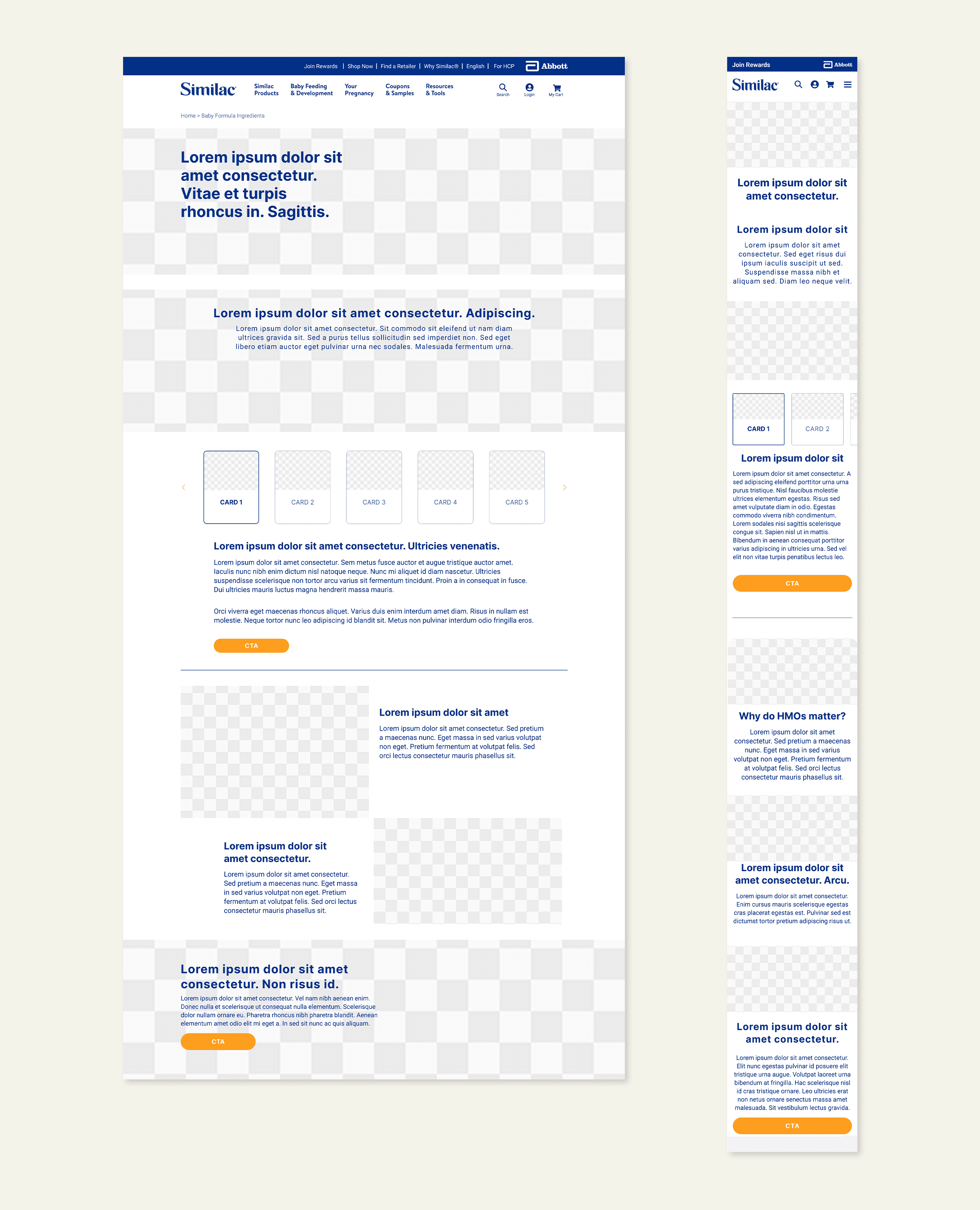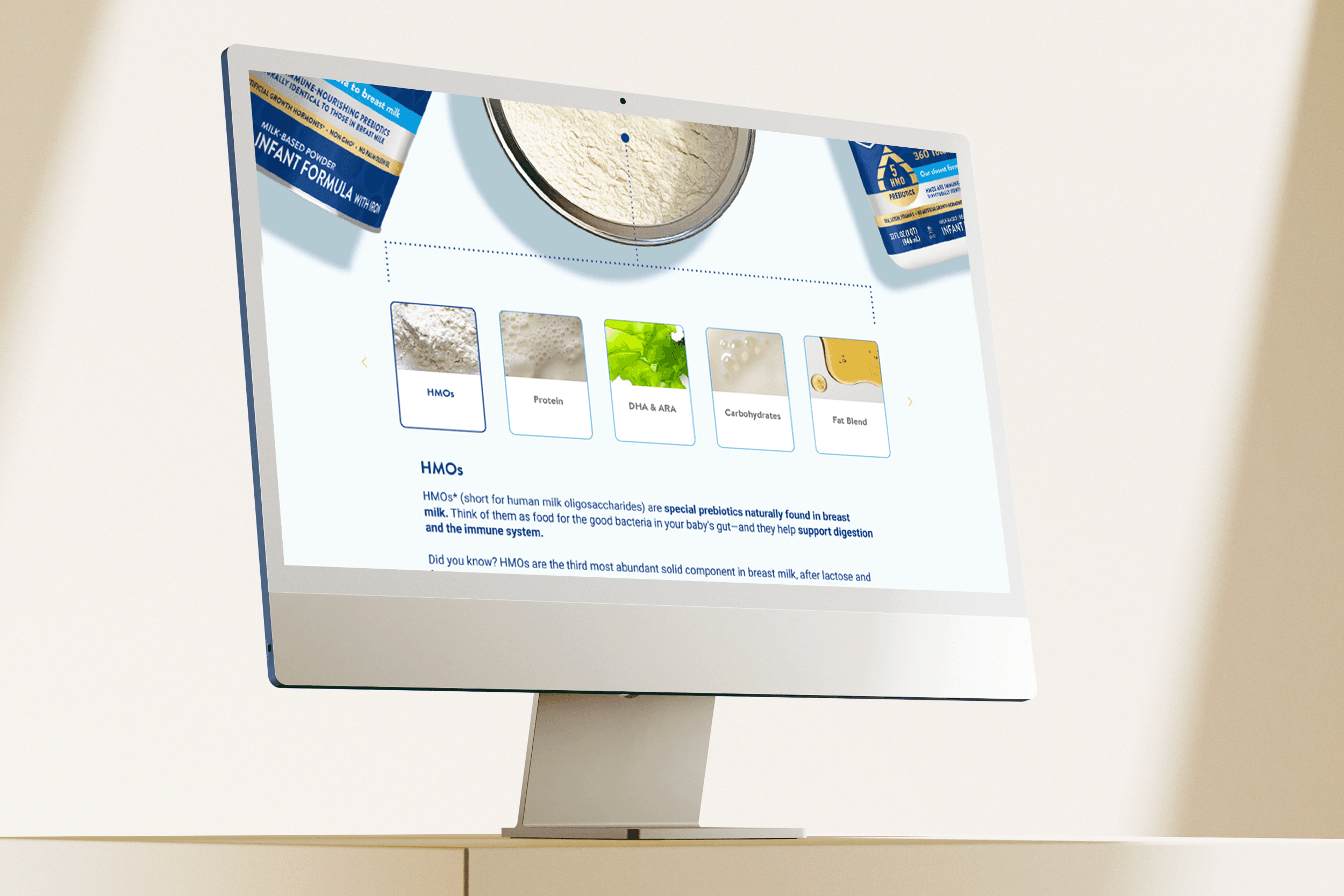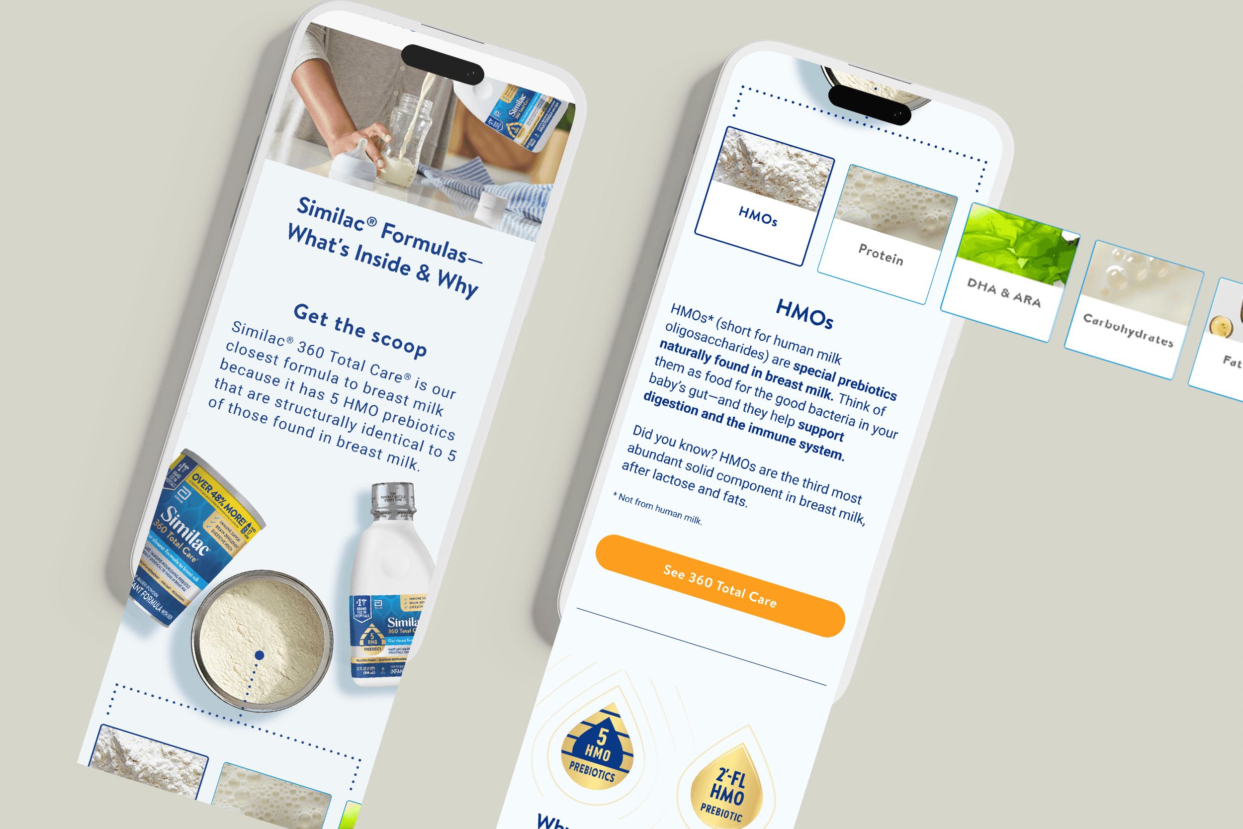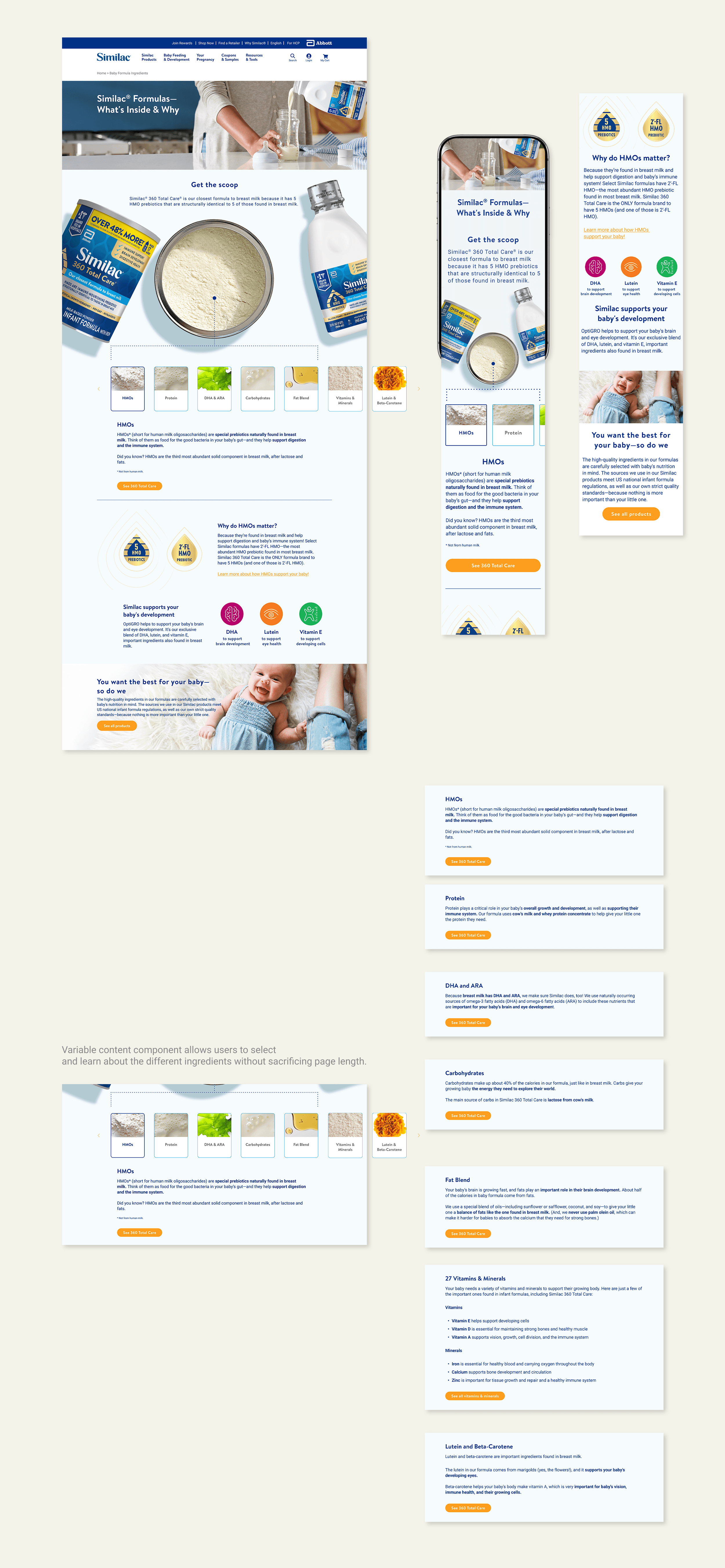 For this critical project, the brand needed to address a key pain point: overcoming the confusion and hesitation experienced by parents overwhelmed by the complexity of Similac's ingredients, who nonetheless desired the best nutrition for their baby. My goal was to create a digital experience that would pivot this complexity into a core benefit, assuring parents that our ingredients provide essential nutrients for growth and development, intentionally mirroring the natural complexity of breast milk.